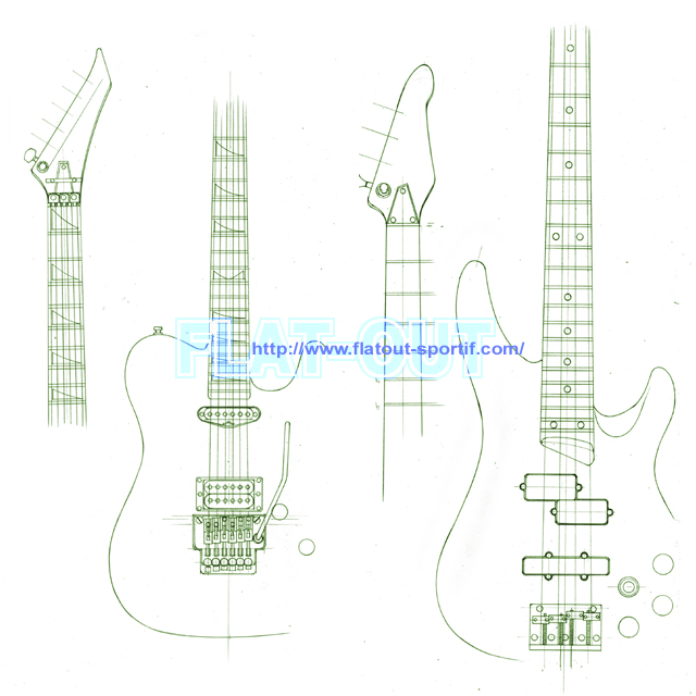 画像 ;てっぺんのは、今回のデザイン用の素材として描いたギターとベース。