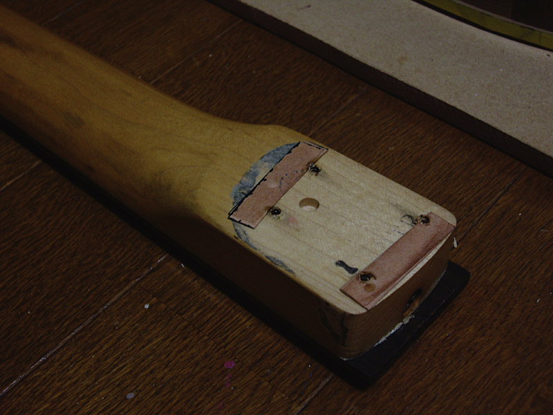 …なので、ボディを造る際には、この辺も考慮に入れてネックポケットの深さを割り出していきます。その他にもトラスロッドの回りがかなりシブく、緩める方に回すとすぐ抜けて来たりして
