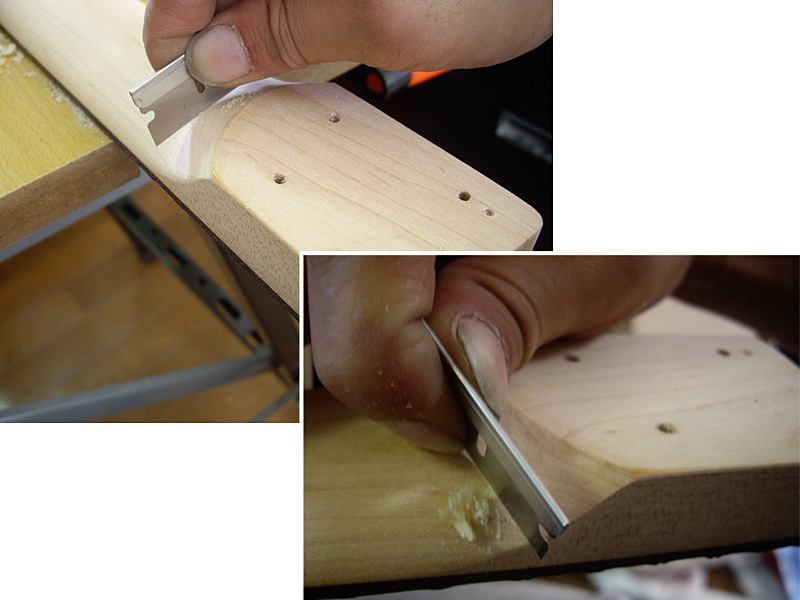 そぉなったらもぉ泣きましょぉねwww(まぁ、その勢いで完全に指板面を無くしちまって、新たに指板を貼り付ければ指板張替えが出来ますがねwww…本来、古い指板は剥がすらしぃ~ですがw)画像・右:コレは…指板面の各作業