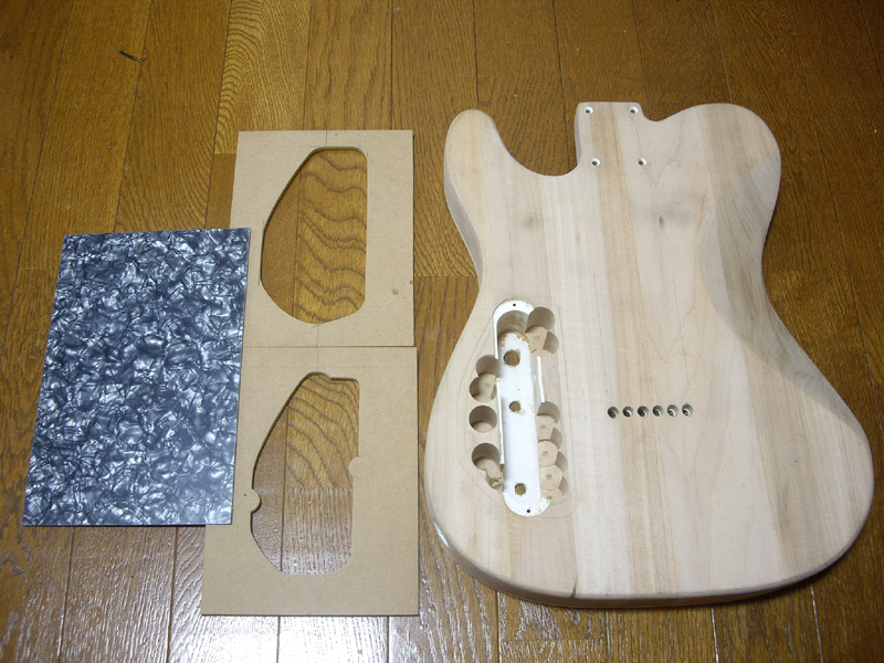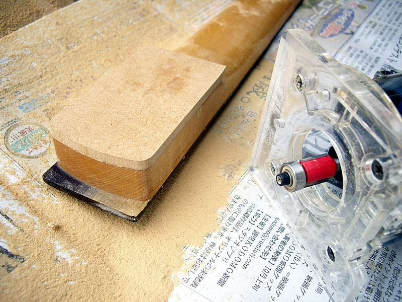 と言う事で、TEJネックのエンド形状をコピーする為に、MDF板を貼り付けて「型取り」しましたです。