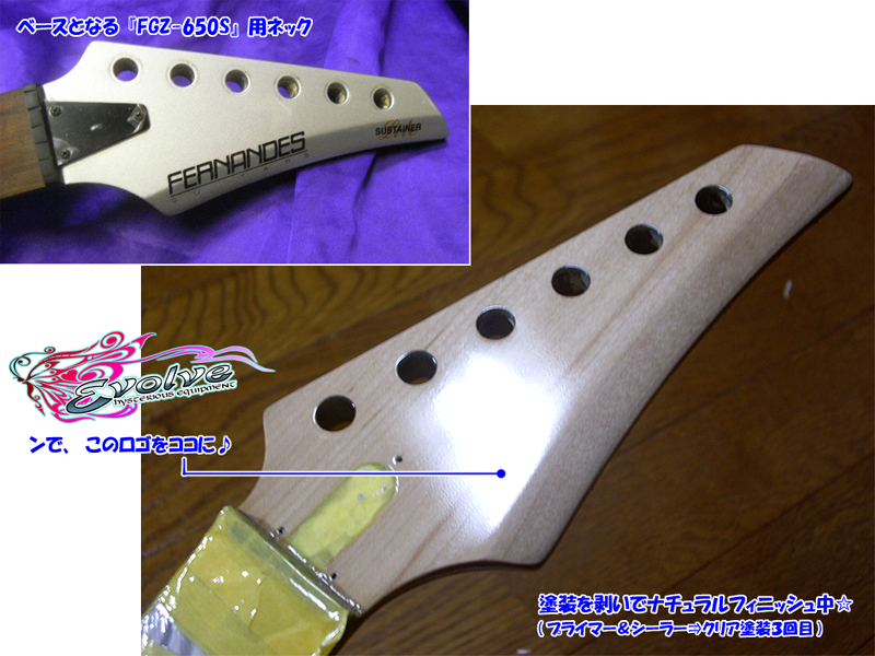 ※FGZネックの下に写ってる白地のコンコルドヘッドは、TEJのネックではありません(^_^;)このカスタムが終ったら作成に入る…髑髏模様のテレ・S/H・フロイド仕様の為のネックです。