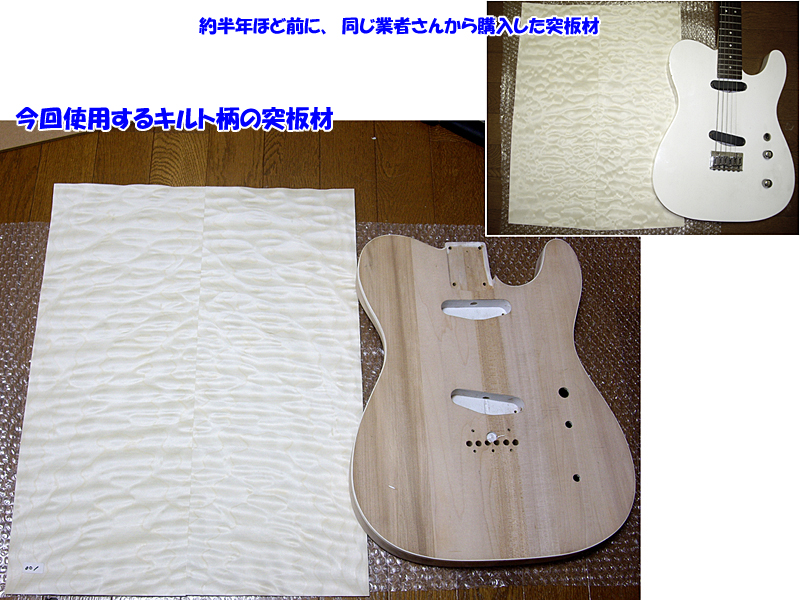 画像・右:…はいwボディと突板材の貼り合わせ中ですw