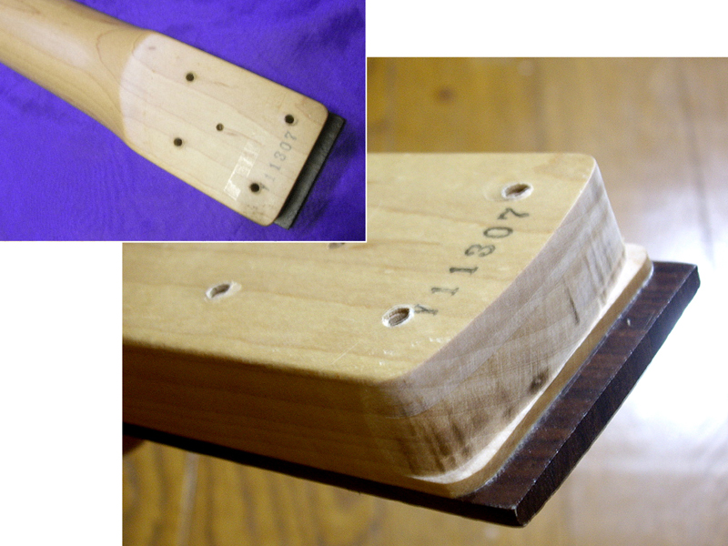 TEJネックのエンド形状コピー」で作ったガイドを用いて、FGZネックのエンド形状をTEJボディに合わせたモノです。