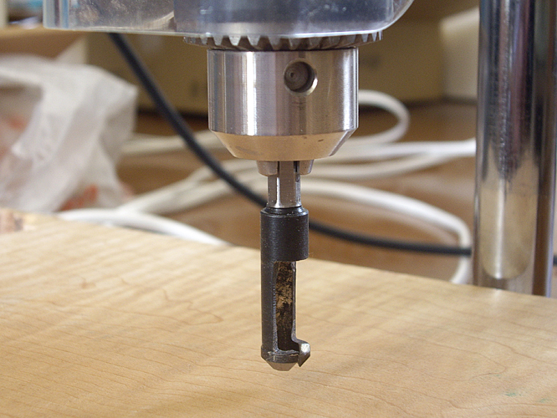 元々の深さは約15mmだったので、6mmのドリルビットにテープを巻き付け、それをガイドにして15mmだけ掘り下げます。
