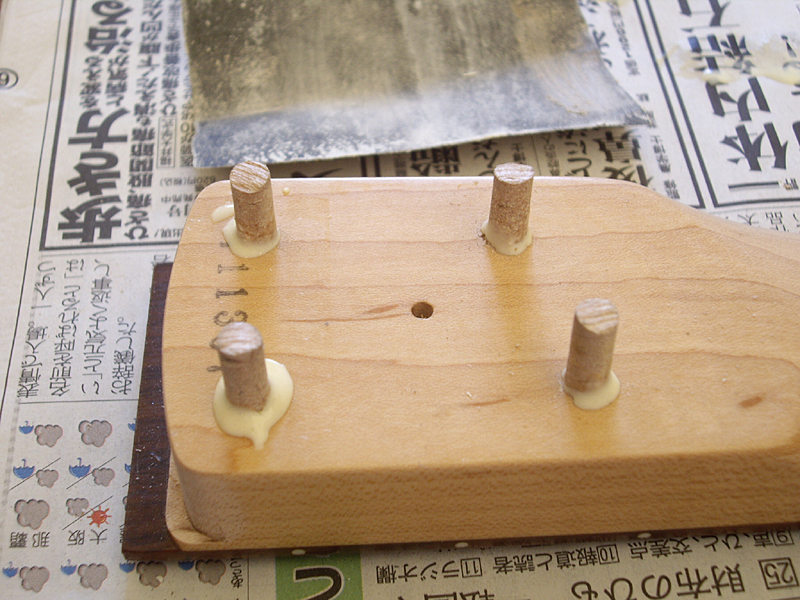 埋め木」をしようかと思ったンですが、この部分のボディ厚が実測4mmしかなく、強度的に恐かったのと…