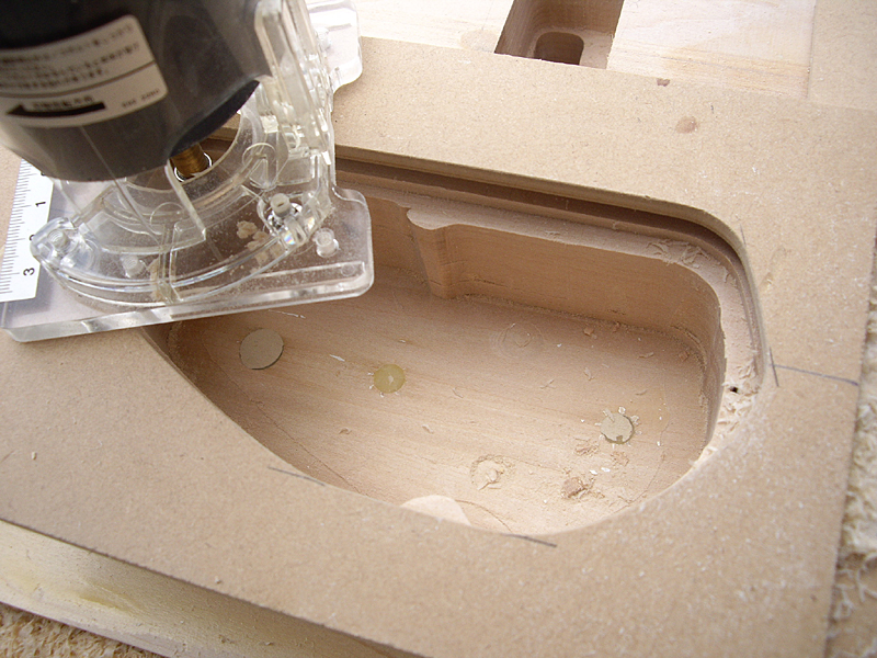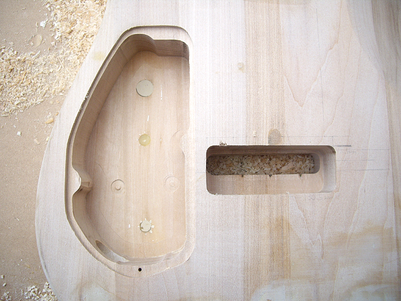 …因みに、キャビティの右側のトレモロ・ハウジングは既に彫り終わっちゃってますねぇ~(^_^;)