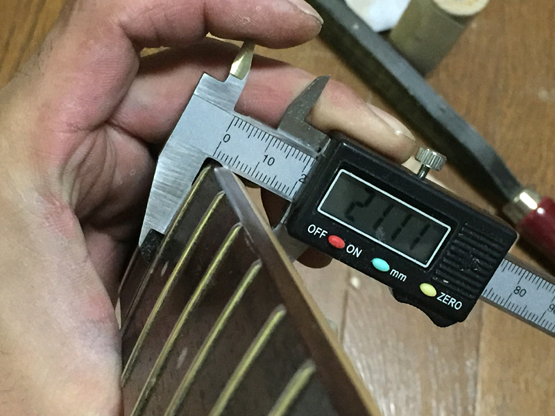 ちょっと削ってはスケールで直線を確認して、また削っては確認して…の作業を何十回も繰り返すと言う不毛な作業ですからwwwでも、コレを適当にやっちまうと、フレットを打った後で