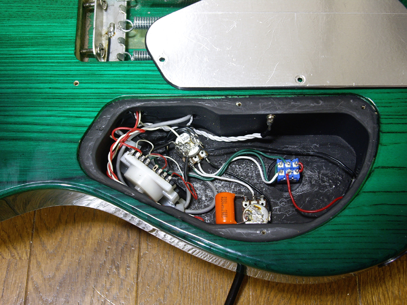 ノーマルでボリューム&トーン・ポッドが250kΩだったのを、500kΩのモノに換えて…