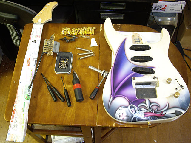 作業待ち』でバラバラになったギターが2本…3本と増えていくのに従って、自分の居場所が減っていくのはマズいンでねw